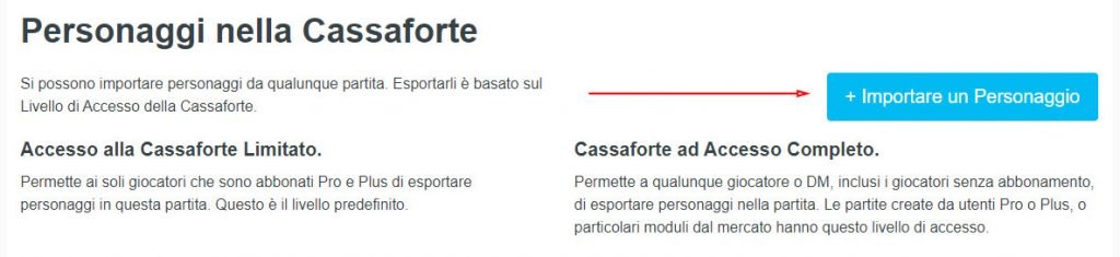 - I giocatori dovranno entrare in partita e creare la propria scheda personaggio oppure importare un Personaggio SALVATO nella “Cassaforte dei personaggi“.